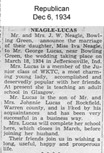 | Lucas, George | Neagle, Iva | Jeffersonville, IN |