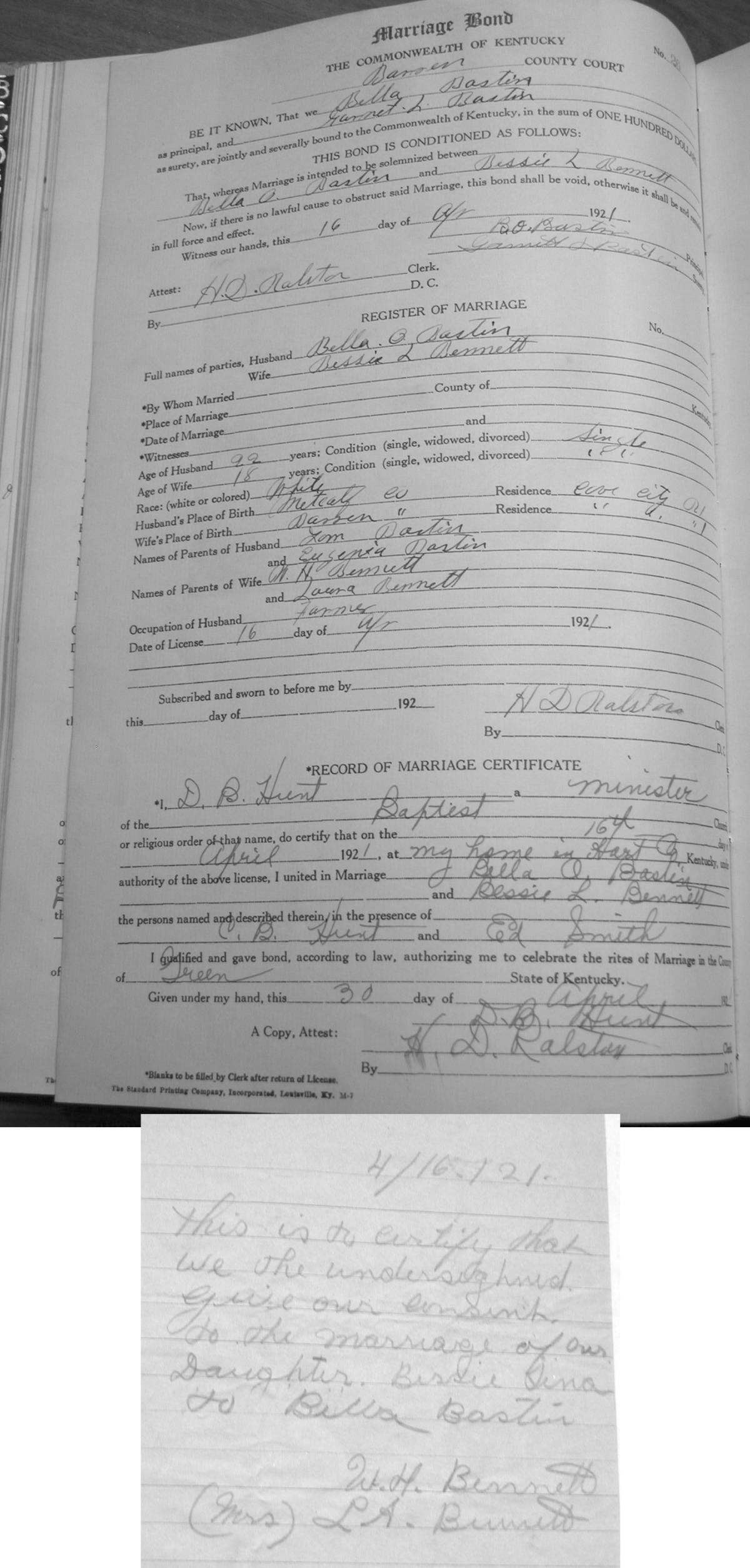 This Ella Sue Brown md 5 times according to the marr record. I know who three of her husbands were: 1st Daniel Sams md. 21 June 1921; 2nd Earl William Waddell 6 Jan 1978 ; 3rd Stanley Thurman Brown md 04 June 1979 ] Wonder who the other two husbands were???? EPB |