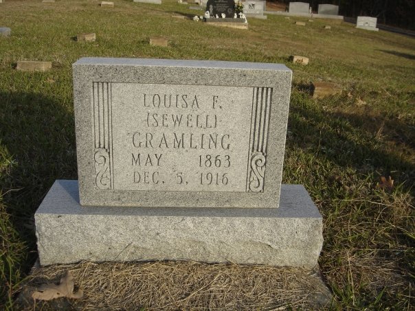 | Gramling, Louisa F. (Sewell) | May 1863 | Dec 5, 1916 | Stone Reverse |