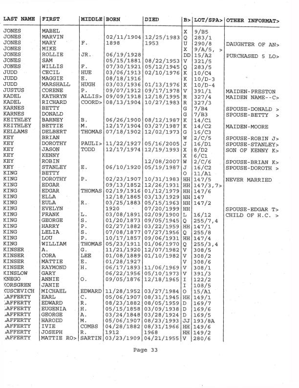 Provided by Linda Jolly Hunt & Karen Logsdon Phillips