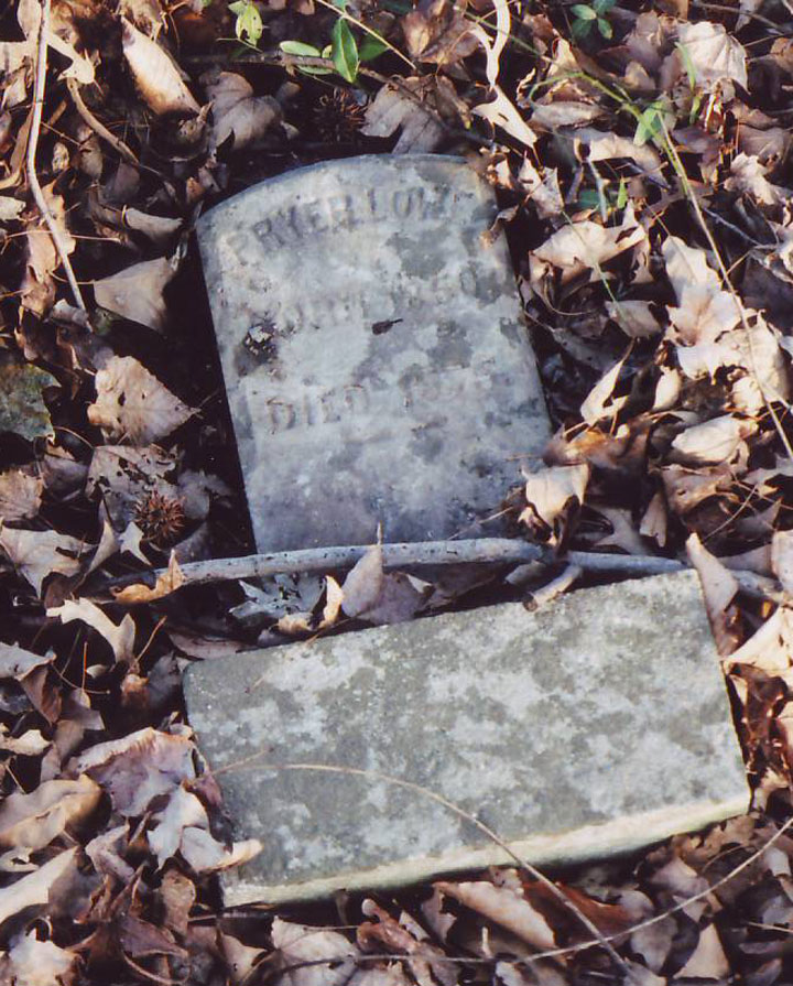 Located off the Blaine Evans Road, near the Warren County line. In bad condition, was being used as a dog pen. 30 – 40 field stones and some manufactured stones with no inscriptions. |