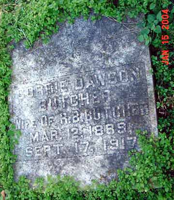 Nee: Dawson. Wife of R. B. Butcher. Enclosed in concrete wall enclosure.