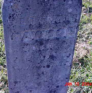 "An elderly lady who lived across the field from the cemetery told this story: 'Some local bad guys heard he (Jeremiah Dawson) had a lot of money in his house, and they came to rob him. To make him give them the money, they shot off one of his ears. There is now a house that was built on the site of the original home. Some of his kids and grandkids are buried there too. That is where Ransom Amos Dawson and some of his kids are buried too.'