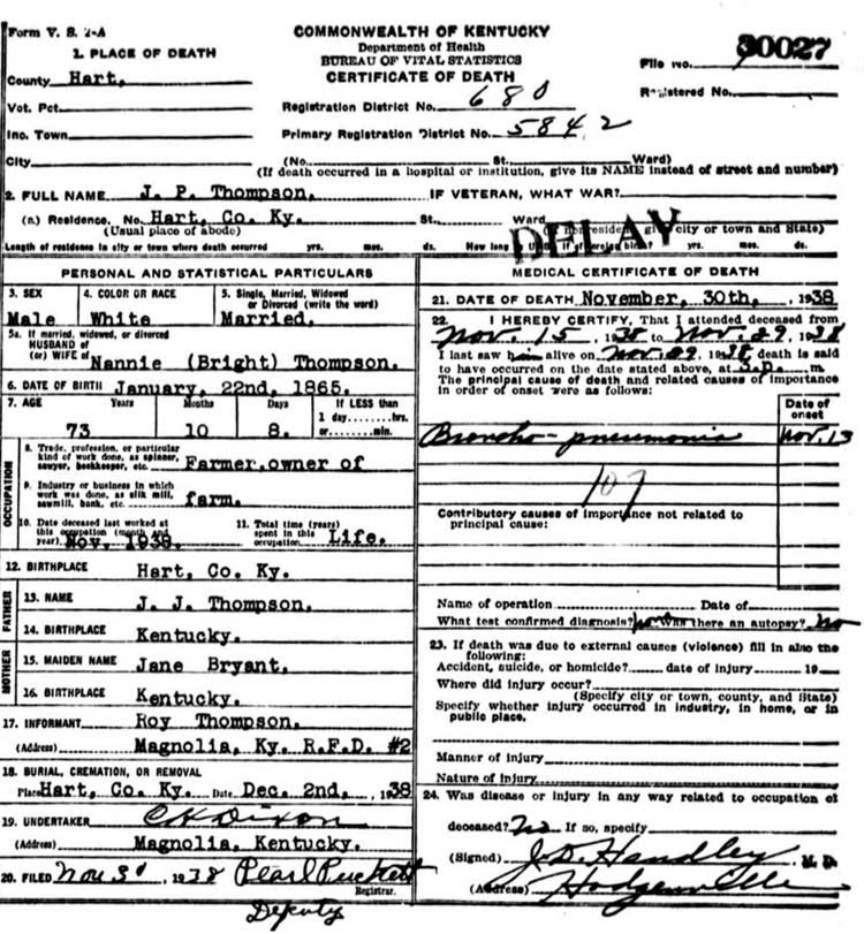 Community Cemetery Magnolia, Hart Co., KY Located on Aetna Furnace Rd. Presley Slayton donated the ground for this cemetery with the stipulation that grave plots were free to anyone wishing to be buried there. All stones have been listed. Copied June 19, 1999 by Donna Cottrell Mather SSA – Same Stone As |