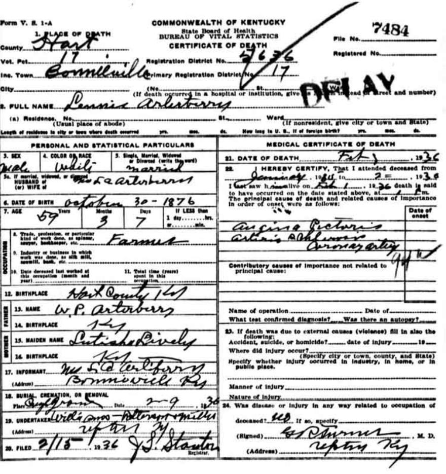 William Franklin Cave 16 Jun 1861-12 Sep 1939 s/o Abner Cave, Jr. (b. 1821) and Lavina Scott. He was married twice; first to Laura Belle Dorsey, then after her death to Fannie Lee Wright. |