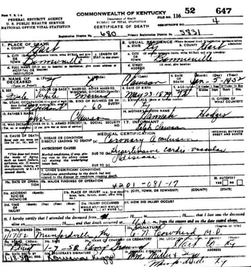 Thomas D. Cave 20 Mar 1812 in Orange Co., VA; died 3 Jun 1895 in Hart Co., KY. He was a son of Abner Cave (b. c. 1785) and Elizabeth (Betsy) Sims. |