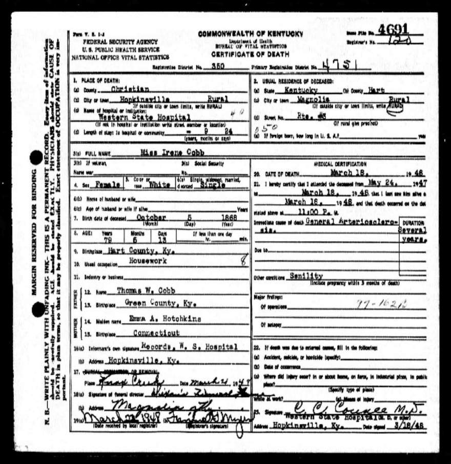 | Cobb, Eliza Irene |