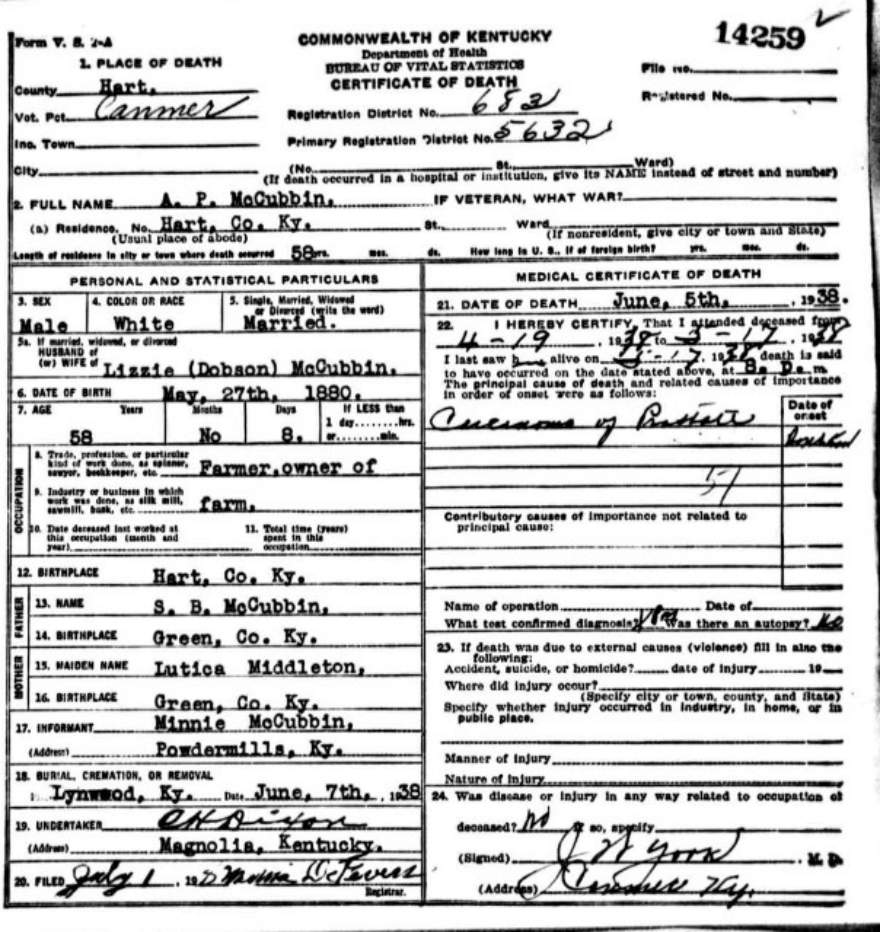 | Beams, Lizzie (McCubbin) | unknown - March 22, 1974 |