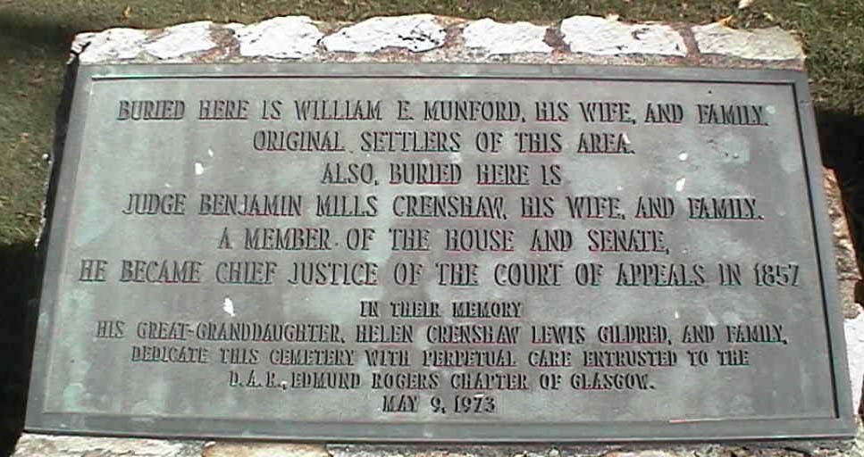Located on N. Franklin St. near the end of East Front St. One of Glasgow's older cemeteries. Many Revolutionary soldiers are buried here. This cemetery is maintained by the Edmund Rodgers Chapter of the DAR and is fenced and in excellent condition