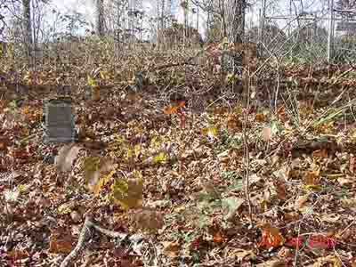 Part of the cemetery has a few graves within a chain link fence area; but most of the cemetery is outside the chain link fence. The cemetery is in extremely bad shape as many stones are broken. This is a complete listing of tombstones as seen on October 30, 2003.