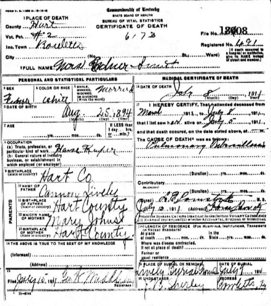 John Craddock Lively h/o Nancy Catherine Farris s/o James Sheldon Lively & Elizabeth Craddock f/o Edward Lee (Ed) Lively and Nellie V. Lively