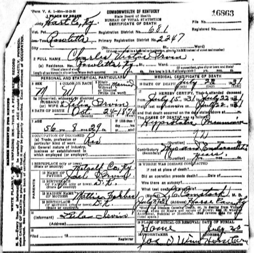 | Bratcher, Vernon | Barren | 2/14/1935 | C. Olney | Cherry Springs | ||||