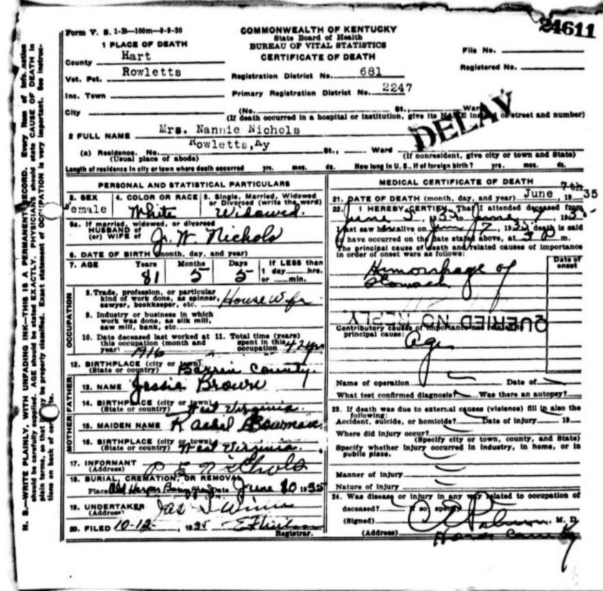 | Waddell, Lella | Payton | Barren | 3/23/1949 | E. Bastin | HC | |||