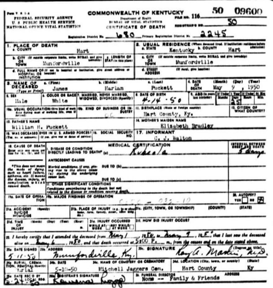 | Wright, James Abner | Hart | 11/5/1937 | E. Bastin | Hubbard | ||||