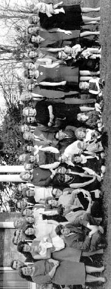 The menu was always turkey, individual dressing balls, gravy, mashed potatoes, lima beans, individual molded salads with shredded apples, relish trays, whole cranberry sauce, homemade rolls, and Dickinson pumpkin pie with whipped cream. Cousins Paul and Margaret Holman added scalloped oysters. Lewis had been very active at First Christian Church as a deacon, elder and trustee. As a layman he gave a sermon advocating the acceptance of whatever form of baptism a person had received when that person, formally a member of another denomination, joined the church. This had been an issue confronting the congregation as new members joined who had been baptized by sprinkling as infants or children. At the time, a new member was required to be re-baptized by immersion before joining the church. The congregation soon accepted the policy that Lewis and others advocated. |