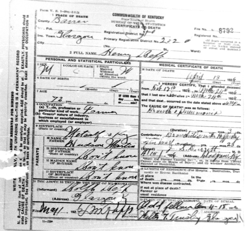 | Darnell, Benjamin Franklin | provided by Green Co. Genealogical Society | |||