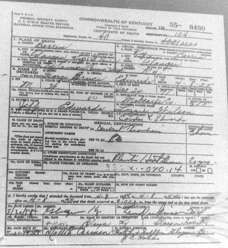 | Edwards, Edward S | Barren | 01/11/1919 | ||