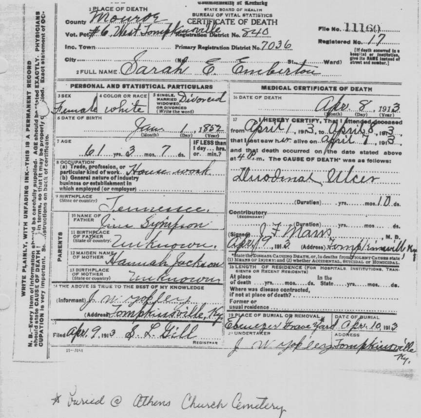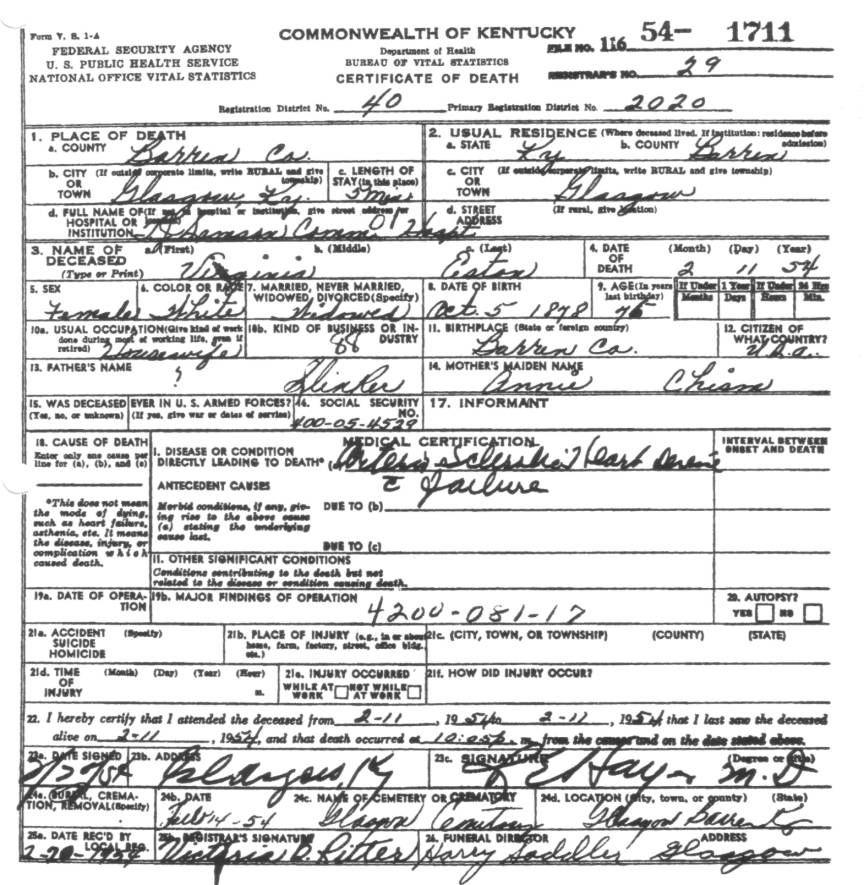 | Edwards, Eliza Francis | Barren | 02/10/1933 | ||