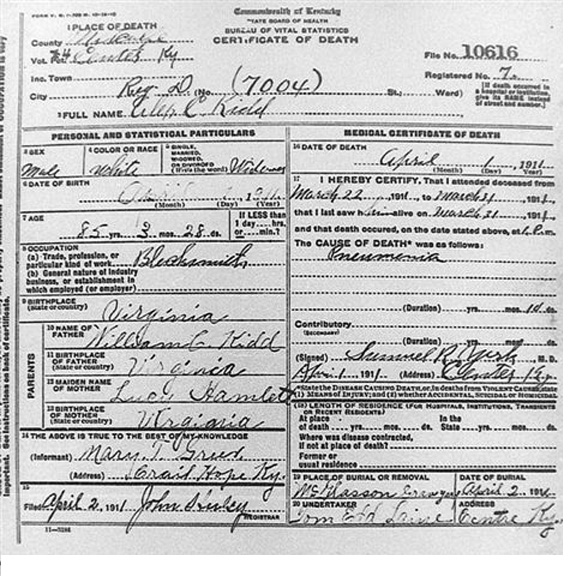 Alexander C Kidd is a relative on my Grandmother Mary Thompson O'Banion mother's side. -