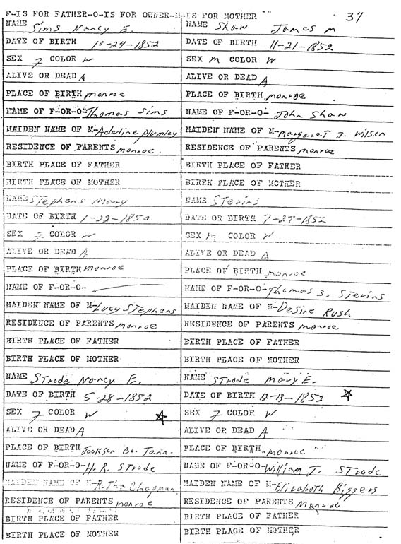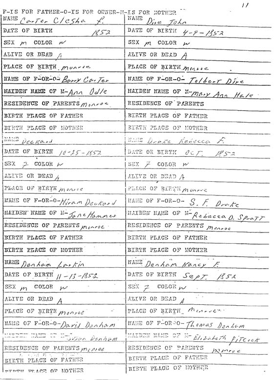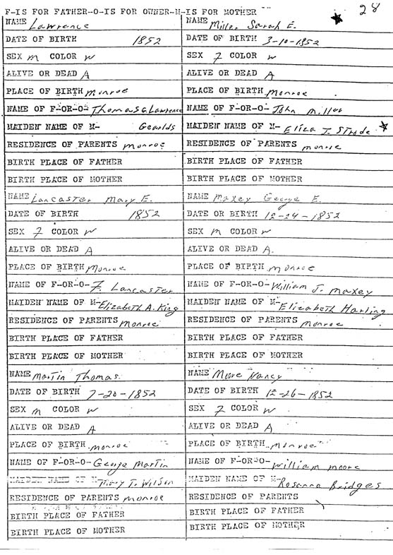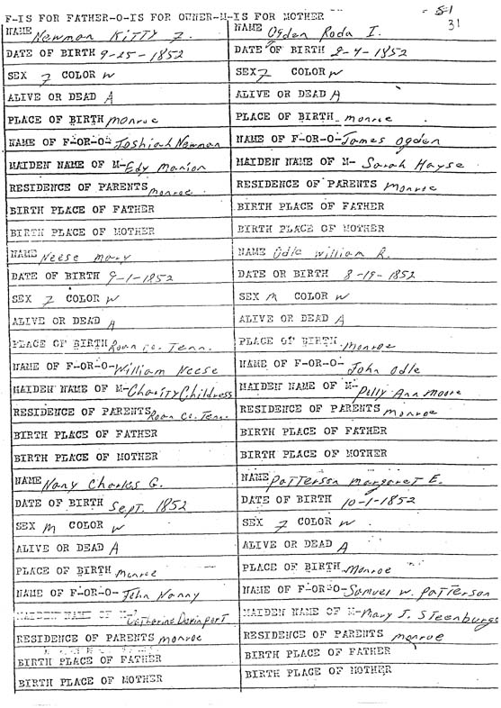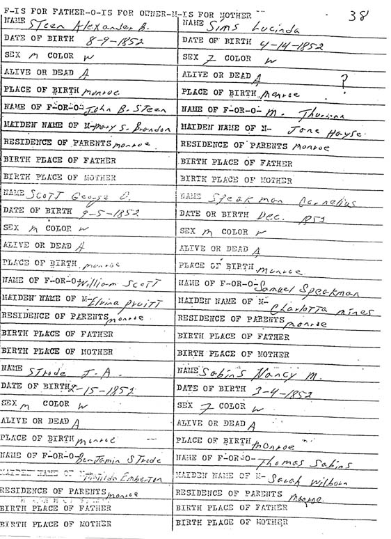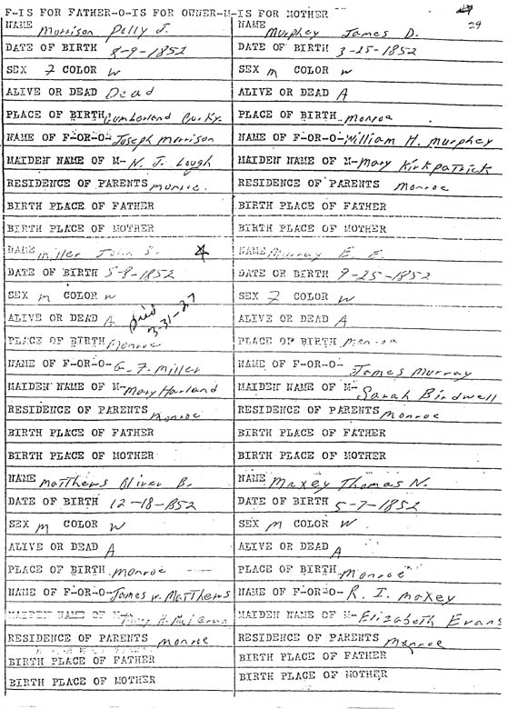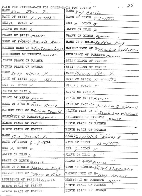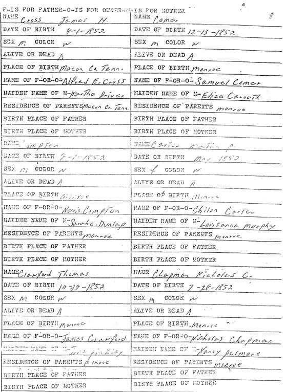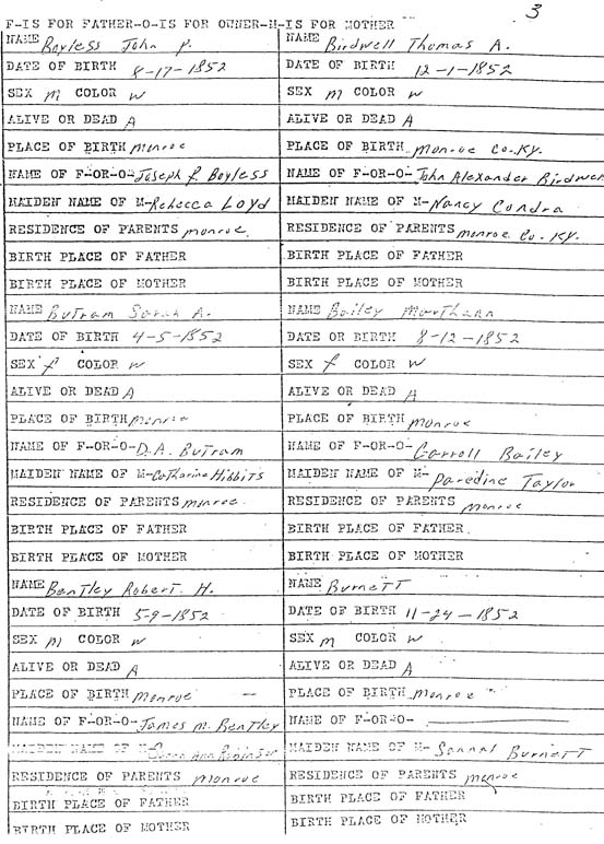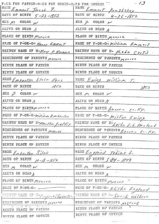 compiled by Marcella Headrick, Monroe Co., Kentucky.