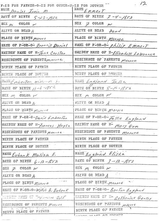 Coulter, Emberton, Emmert, England, Eubank, Gentry, Gist, Gum,