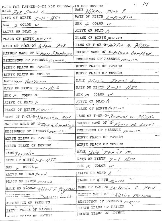 Ferguson, Flippin, Ford, Fox, Isenberg, Gramling, Lowis, Malone, Mutes(sp). |