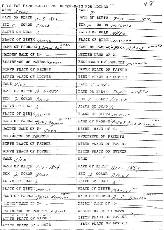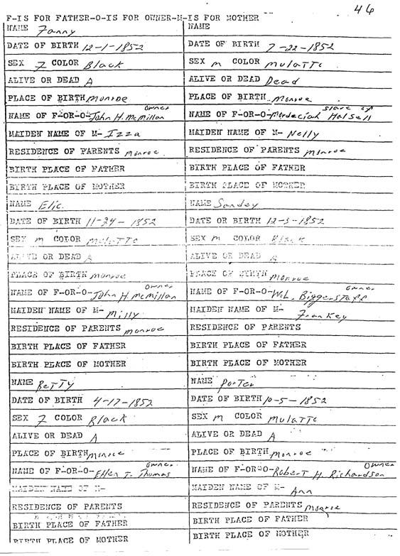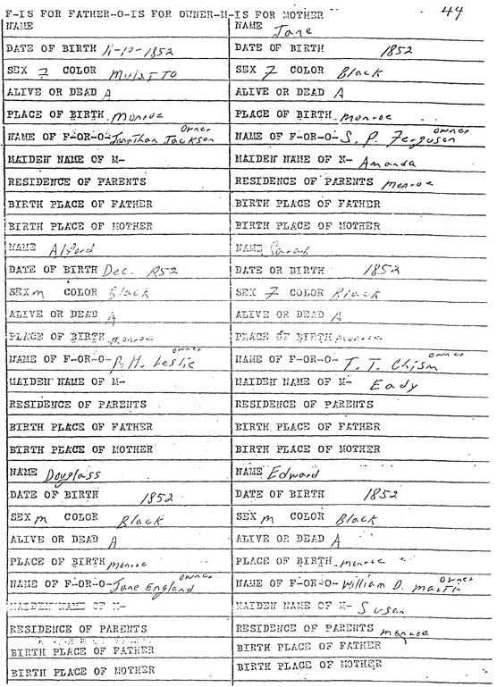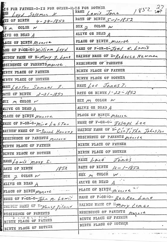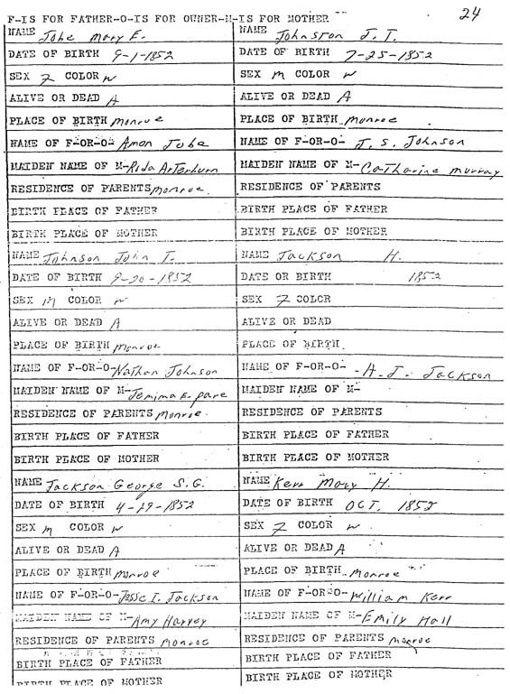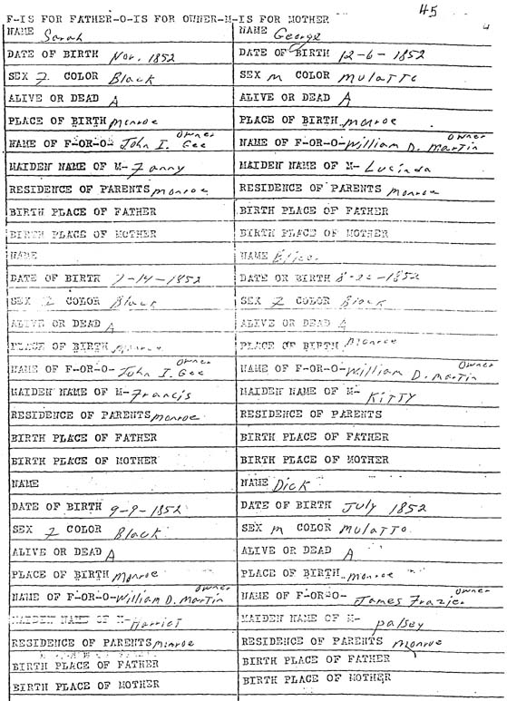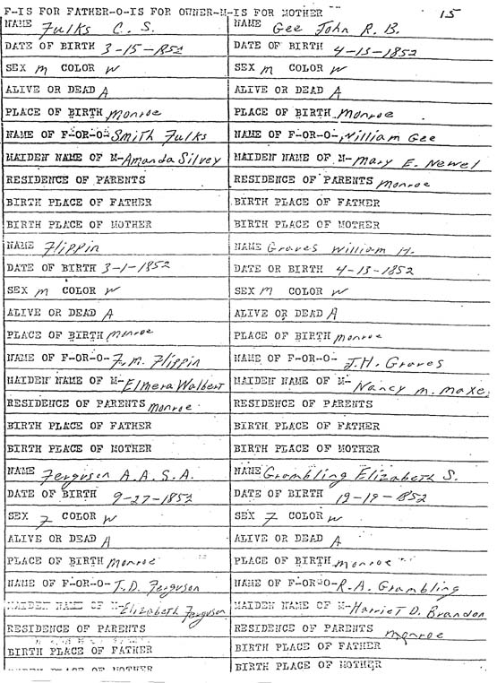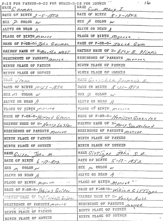 Garmon, Gittings, Glenn, Greenlee, Grider, Gum, Lester, Rush,