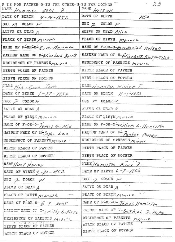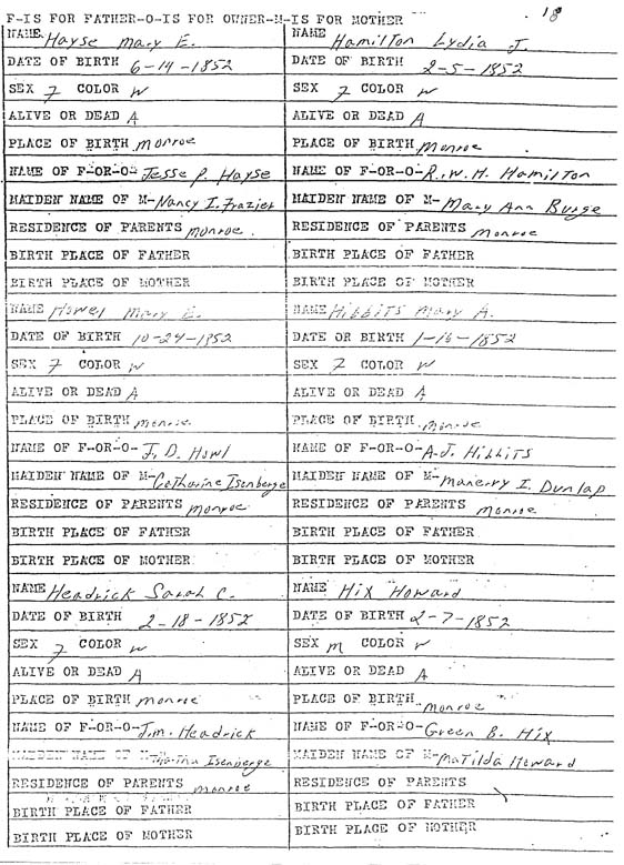 Dunlap, Frazier, Hamilton, Hayse, Headrick, Hibbits, Hix, Howard,