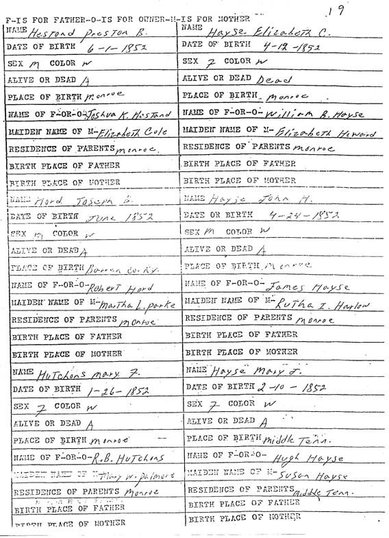 Harlow, Hayse, Hestand, Hord, Howard, Hutchens, Palmore, Parke |