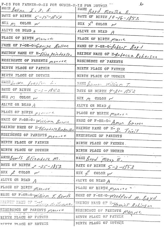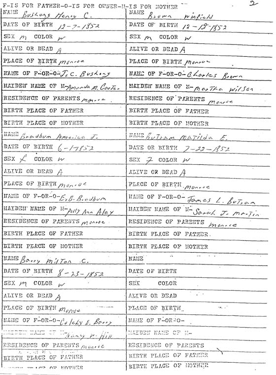 Bayless, Bentley, Birdwell, Burnett, Butram, Condra, Hibbits, Loyd,