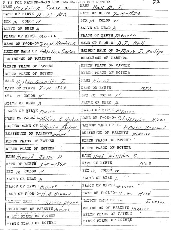 Hall, Headrick, Hines, Hood, Howard, Hughes, Jackson, Payne, Pedigo, Philpott |
