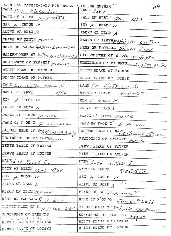 Johnston, King, Kirkpatrick, Ladd, Lancaster, Lee, Loyd, Marrs, Richardson |