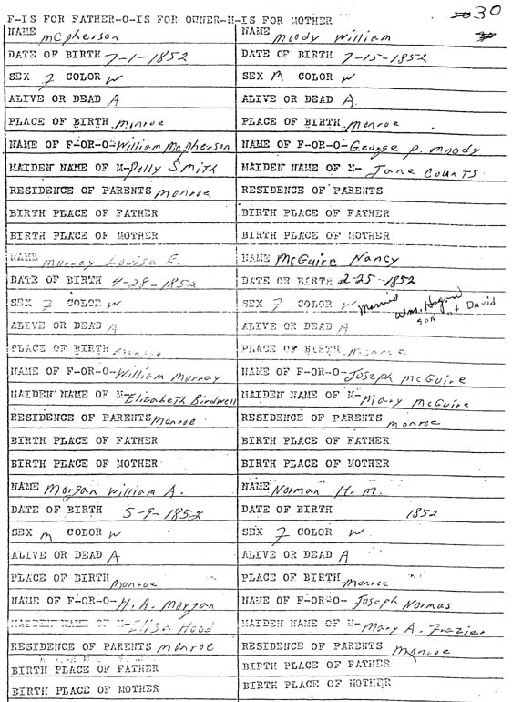 Counts, Frazier, Hood, McGuire, McPherson, Moody, Morgan, Murrey,
