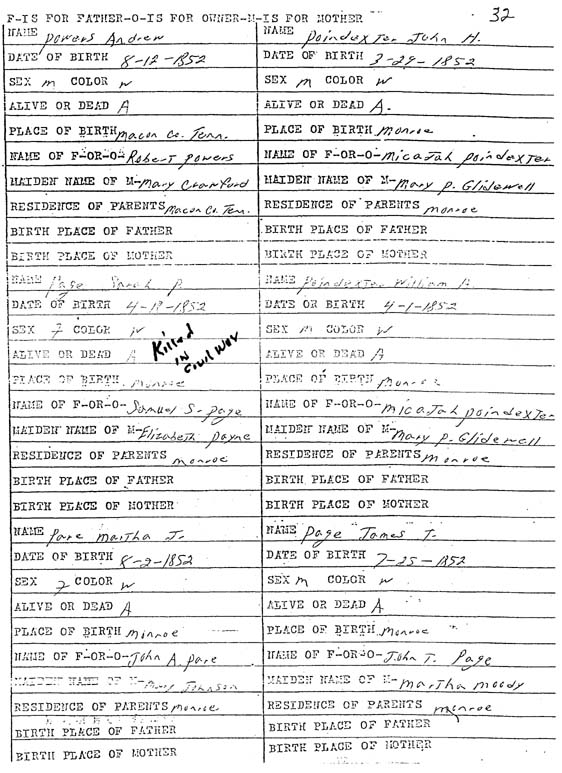 Glidewell, Johnson, Moody, Page, Pare(sp), Payne, Poindexter, Powers |