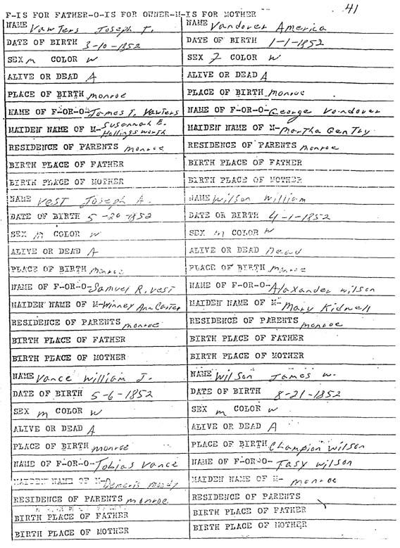 Gentry, Hollingsworth, Kidwell, Moody, Vawters, Vance, Vandover,