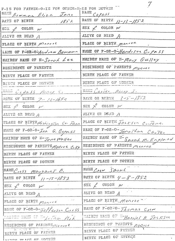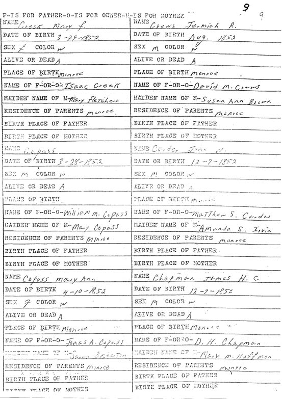 Carder, Chapman, Copas, Creek, Crews. Emberton, Fletcher, Huffman, Irvin |