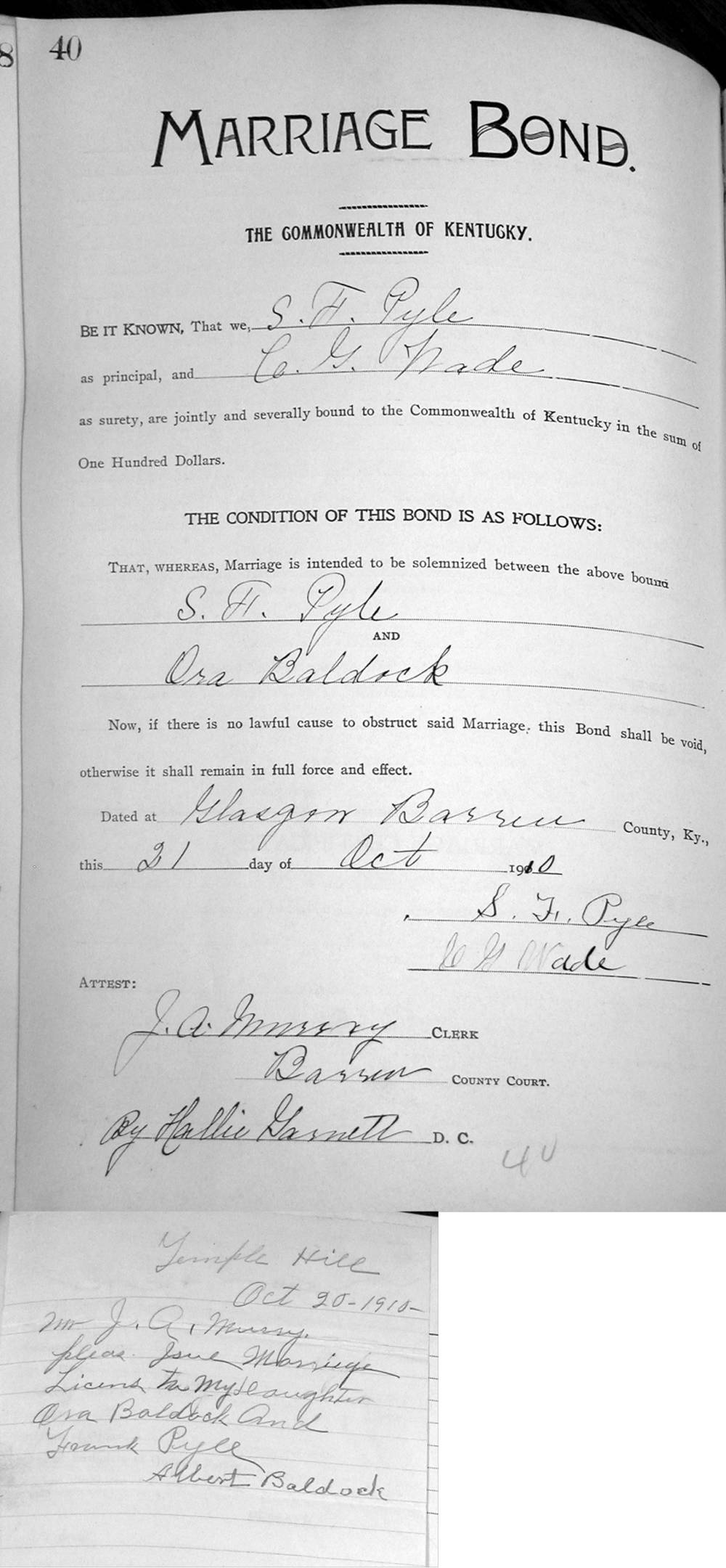 | Baldock, James W. | Elmore, Fannie | Barren |