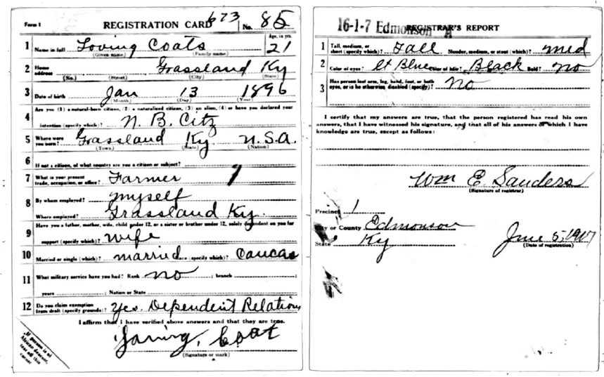 | Coats, Loving | WWI | Draft Card | Sheila Wisdom-Hardin |