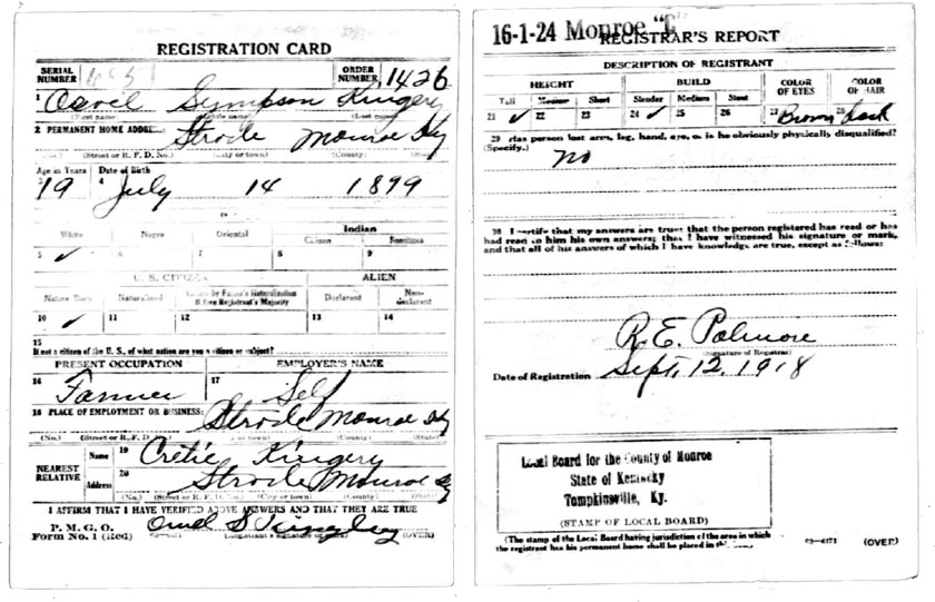 | Kingrey, Albert Ray | WWI | Draft Card | Sheila Wisdom-Hardin |