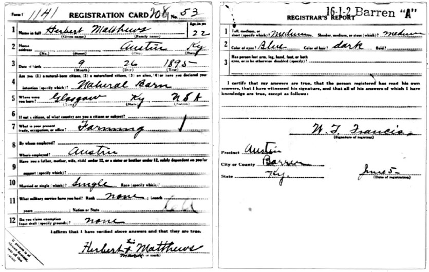 | Matthews, Herbert | WWI | Draft Card | Sheila Wisdom-Hardin |
