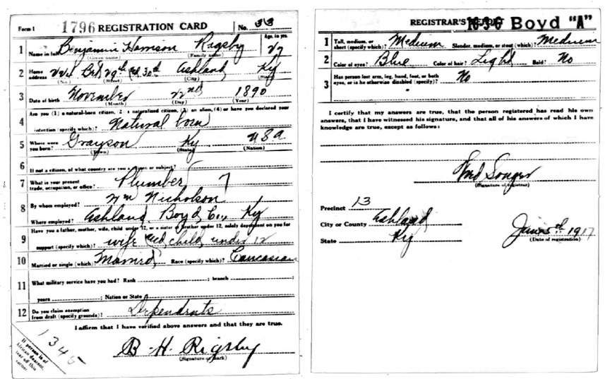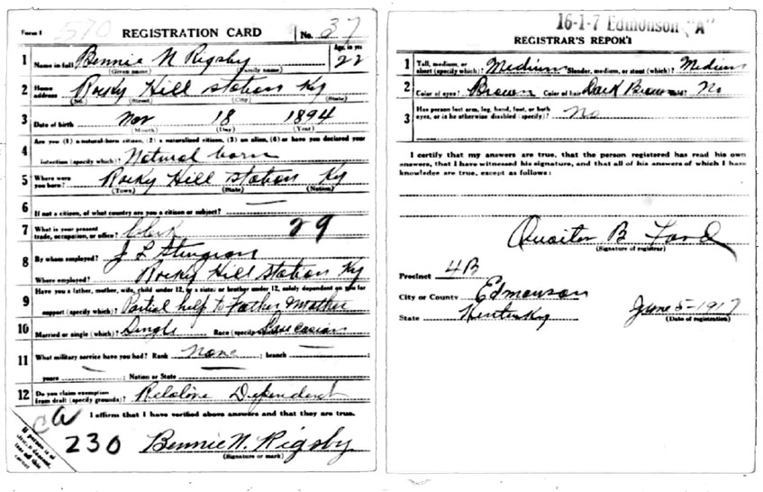 | Rigsby, Benjamin Harrison | WWI | Draft Card | Sheila Wisdom-Hardin |