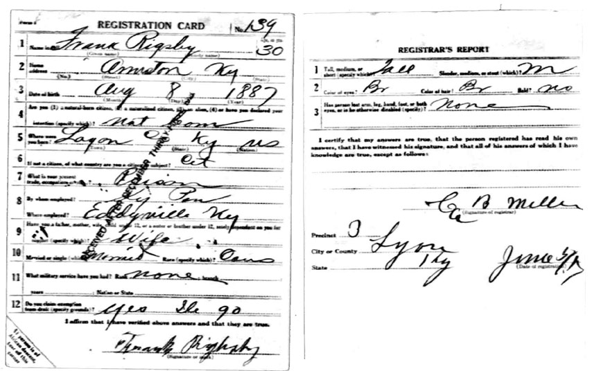 | Rigsby, Frank | WWI | Draft Card | Sheila Wisdom-Hardin |