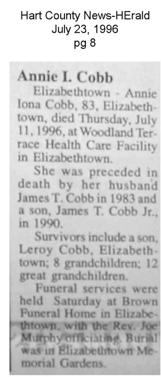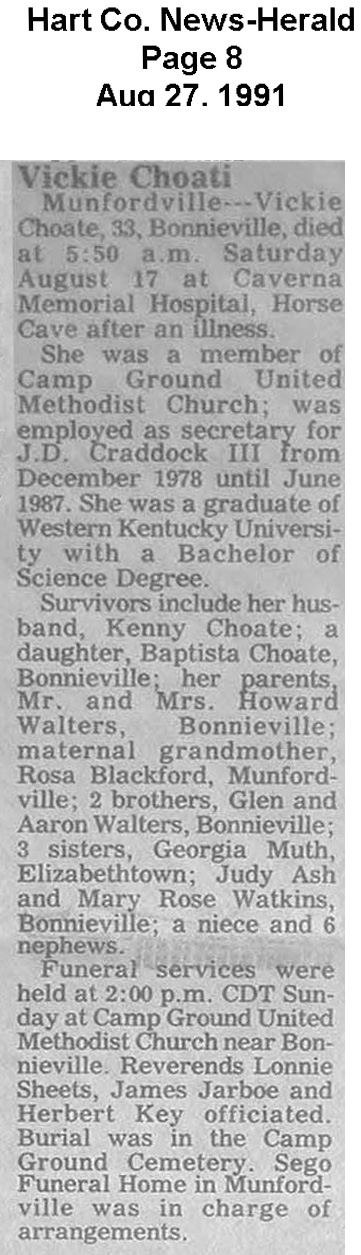 | Cox, Clara Lee Bridgeman | Hart | 09/18/2012 | Sandra K. O'Banion | |