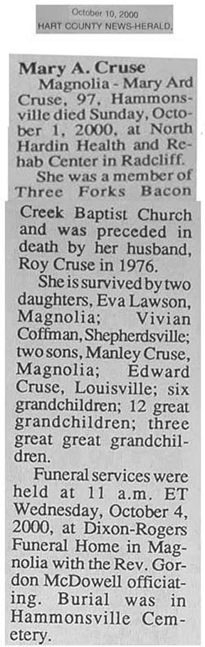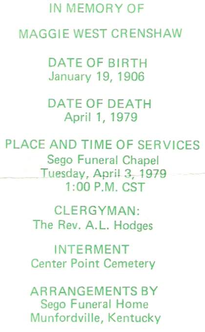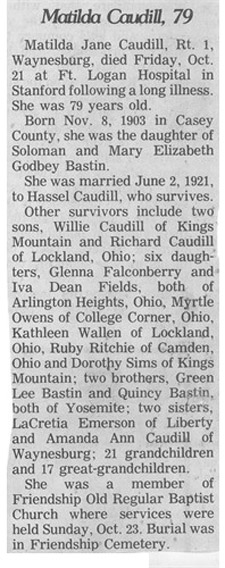 | Caudill, Matilda Jane | - | - | 10/21/1982 |