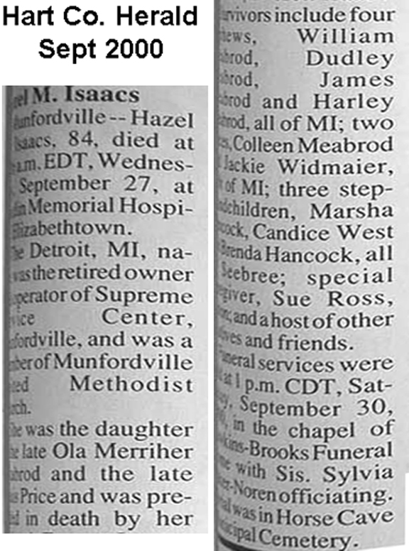 | Isaacs, Hazel M. | Hardin |