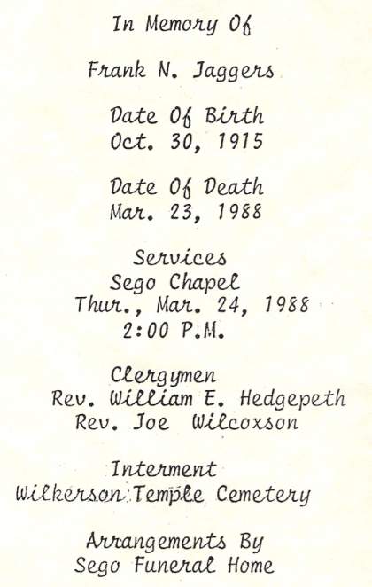 | Jaggers, Willie H | Edith Bastin |