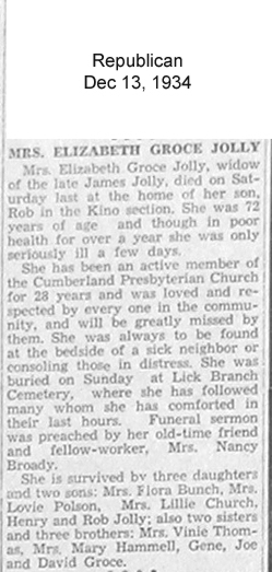 | Jolly, Elizabeth "Lizzie" Groce | Barren