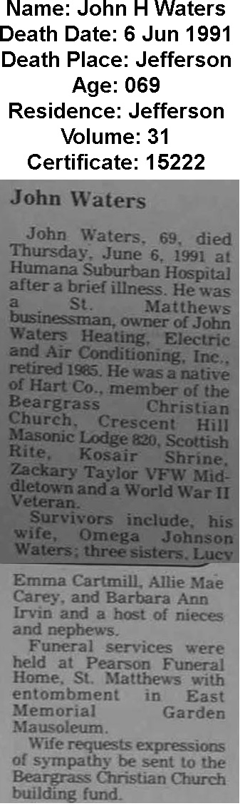 | Walters, Oma Perkins | Barren/Hart | 06/09/2012 | Sandra K. O'Banion |