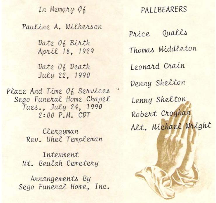 | Wilkerson, Dorothy Mae, Funeral Card | Sandra K. O'Banion |